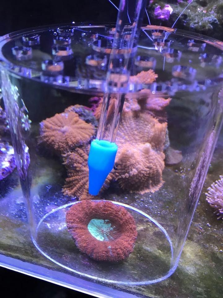 The rubber knob at the end of siphon is the backbone of the Feeding Siphon. Simply squeeze the rubber knob at the end prior to placing it in the desired feeding or nutrient solution that you feed your corals, invertebrates, and fish with. Once this step is completed, stop squeezing the rubber knob and watch the desired feeding or nutrient solution be sucked in to the siphon! From here, you can begin feeding your aquariums dwellers with ease!