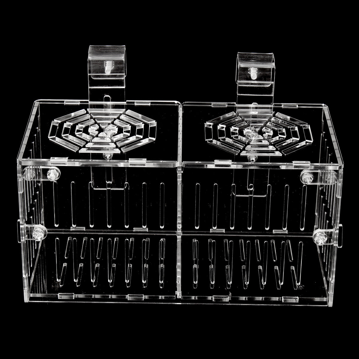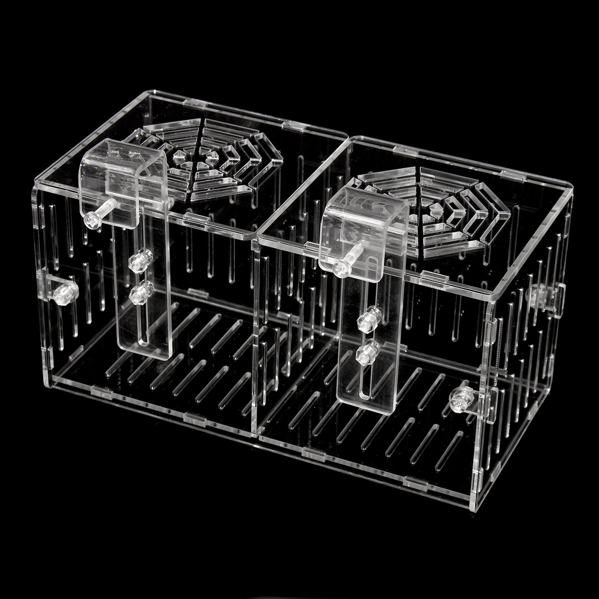 - This also has a secure lid at the top that will allow for easy access. This lid is also secure as in order to open it, you must push it forward and then upward. It also comes with two sections with a removable divider in the middle that allows you to house to separate fish at once.